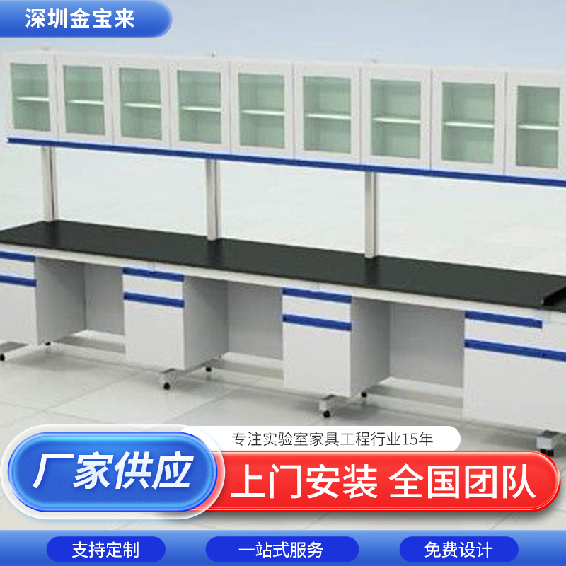 安摆放位置分:中间实验台、边缘实验台、转角实验台贴面理化板 30mm密度板表面贴0.9mm厚理化板,断面用PVC..污水厂实验室工作台 洁净车间化验台生产厂家 陶瓷台面实验室柜台工厂